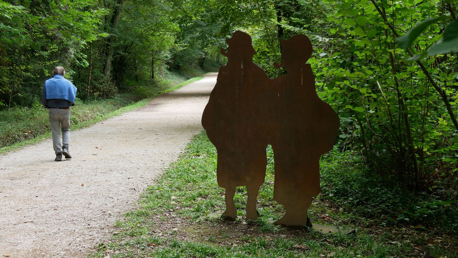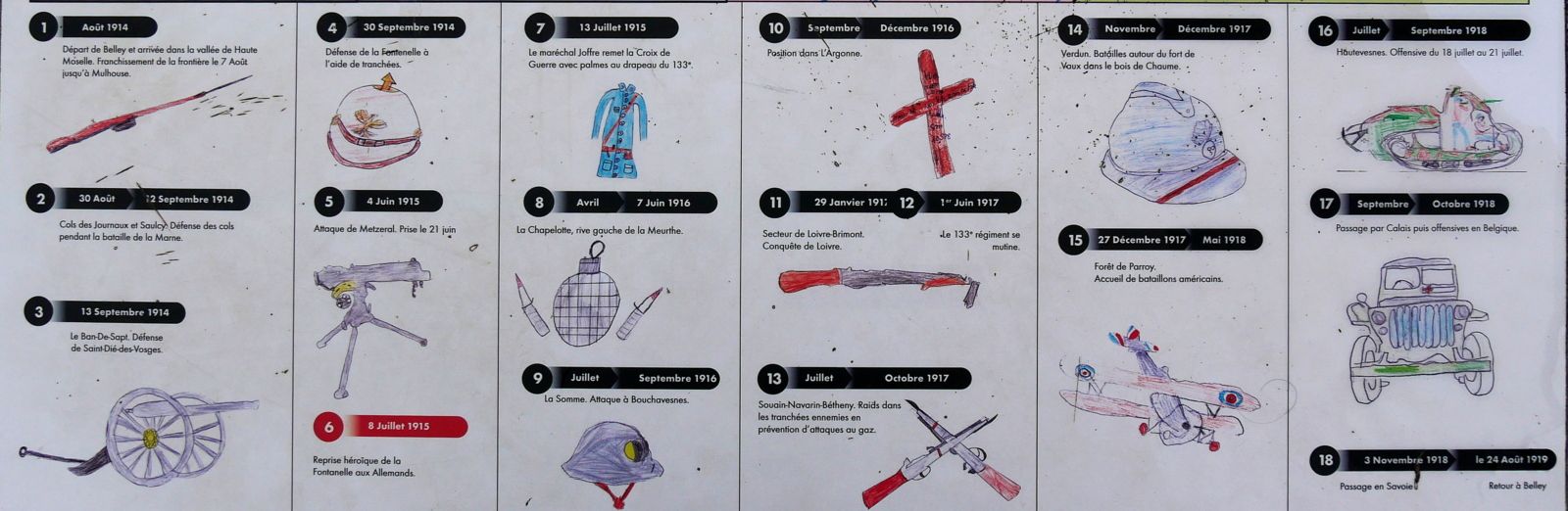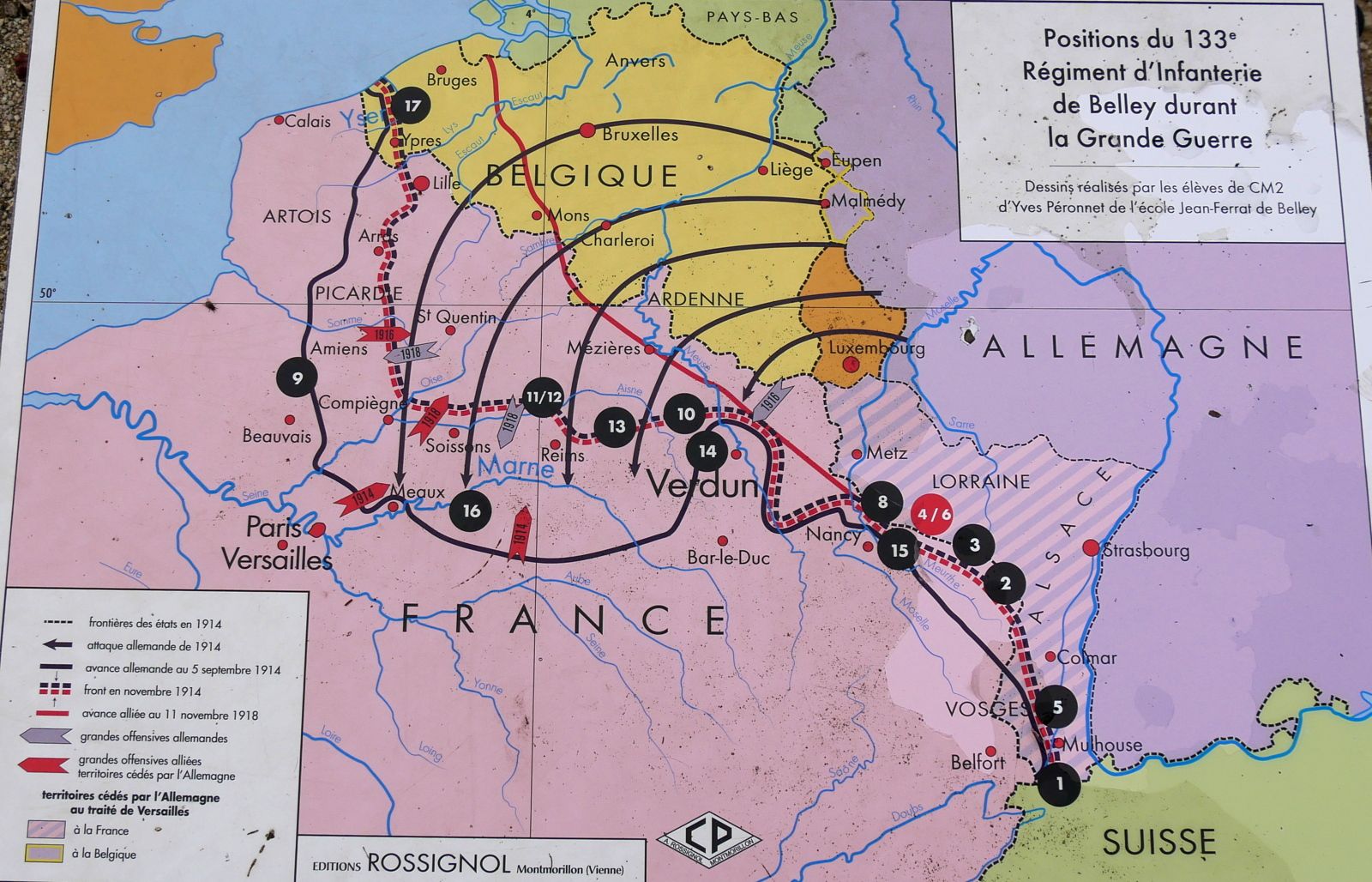 Nous avons suivi le chemin des poilus. Ce sentier a été tracé pour rendre hommage aux poilus de Belley et environs partis à la guerre de 14/18 et dont certains ne sont pas revenus, d'autres mutilés.