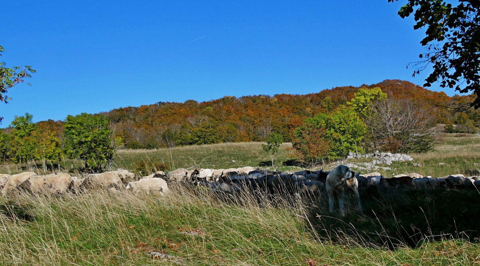 Les brebis rentrent à la bergerie pour la traite. Le matin même j'ai acheté des yaourts au lait de brebis de cet agriculteur, un délice d'onctuosité !!!