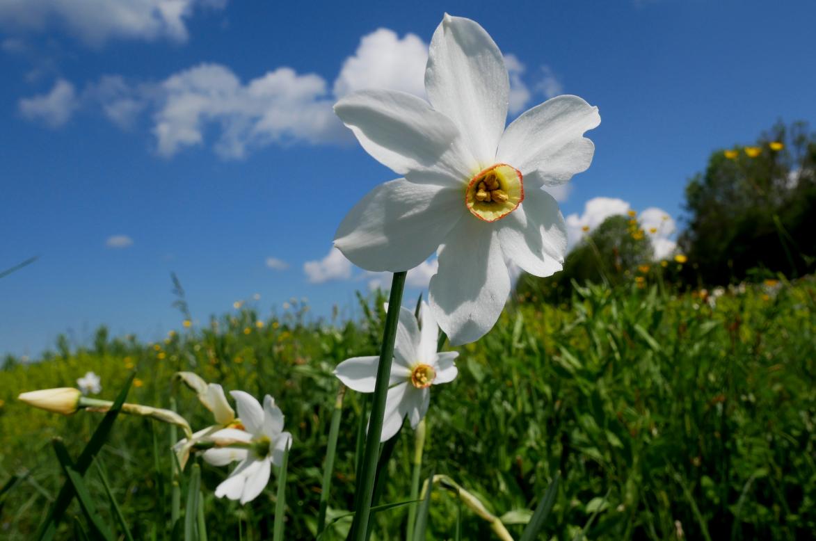 Les prés sont tapissés de myosotis, de solidage ou de boutons d'or.