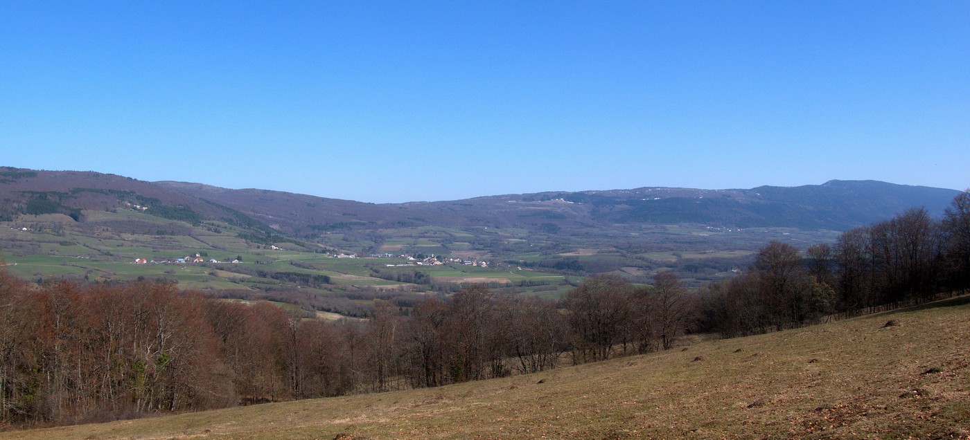En face, le village d'Hotonnes, à gauche le hameau de la Rivoire.